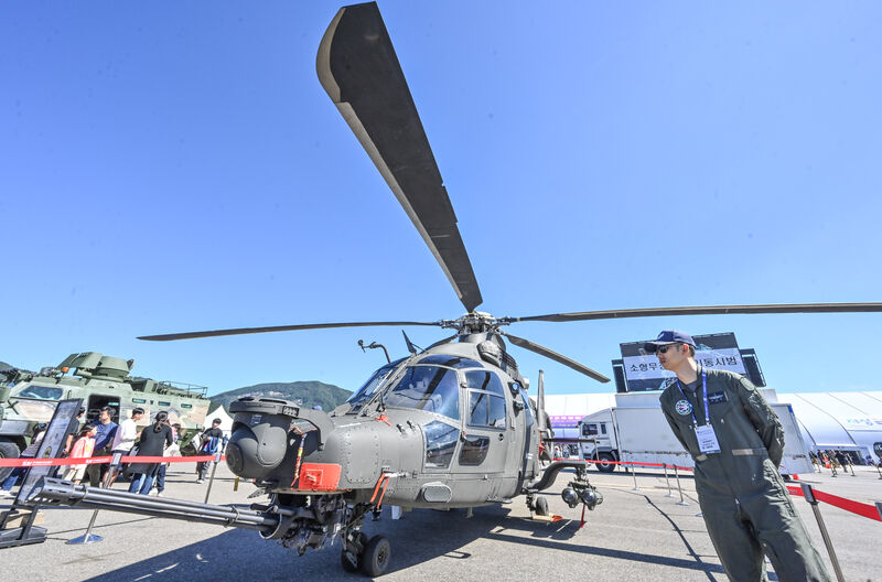 10월 4일 '첨단 신규장비 전력화 행사'를 실시한 미르온(소형무장헬기 LAH)이 지상군페스티벌 행사장에 전시되어 있다. 500MD 및 코브라 공격헬기(AH-1S)를 대체하기 위해 개발된 미르온은 우리군의 항공작전 능력을 크게 향상시킬 것으로 기대된다. (사진 육군)이어진 '첨단 신규장비 전력화 행사'에서는 북한의 전방위적 위협에 대비하기 위한 육군의 첨단 신규장비 4종을 공개하고, 통상명칭을 선포하였다. '미르온'이라는 통상명칭을 부여받은 '소형무장헬기(LAH)'는 500MD 및 코브라 공격헬기(AH-1S)를 대체하기 위해 개발되었으며, High-Low Mix 개념에 의거 High급인 아파치 가디언(AH-64E)과 상호보완 전력으로 운용되어 우리군의 항공작전 능력을 크게 향상시킬 것으로 기대받고 있다. 미르온은 ‘용’의 순우리말 ‘미르’와 ‘100’의 순우리말 ‘온’의 합성어로, 용이 불을 내뿜는 모습으로 100% 임무를 완수한다는 의미한다.