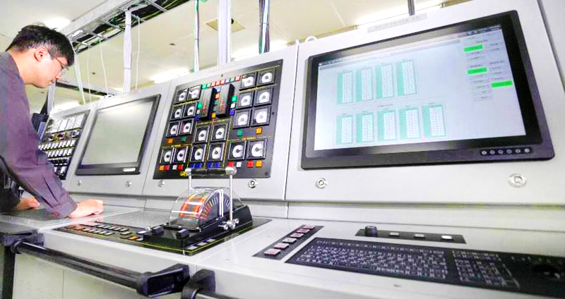 한화시스템 연구원이 통합기관제어체계(ECS)를 점검하고 있는 모습