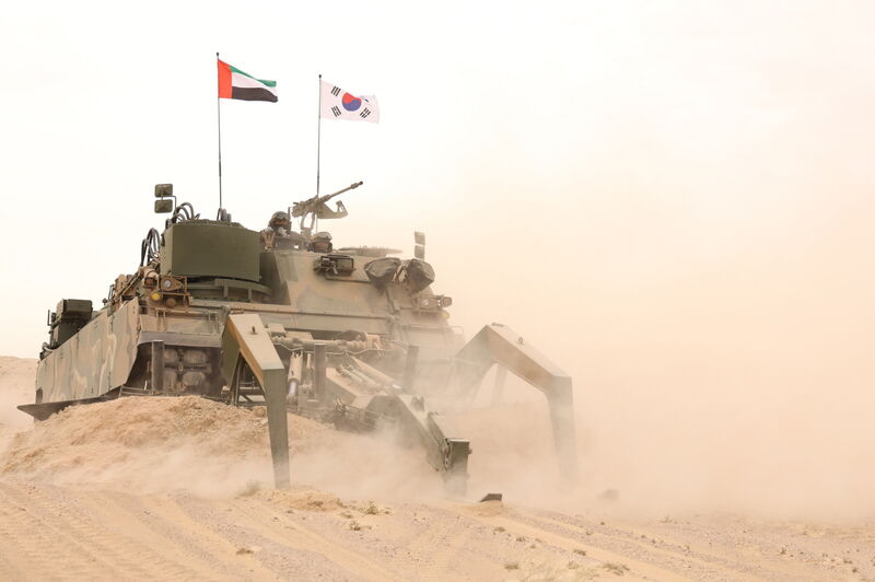 현지연합훈련단 소속 K600장애물개척전차가 복합장애물지대를 개척하며 아군이 기동할 통로를 확보하고 있다. 훈련에 참가한 압둘라 하만(Abdulahman M. Al Teneij/중령) UAE군 훈련통제단장은 “연합훈련을 실시하며 K2전차, K9A1자주포, K10탄약운반장갑차, K600장애물개척전차 등 여러 한국군 장비들의 능력을 직접 볼 수 있었다”며, “한국군과의 훈련은 매우 좋은 경험이자 큰 영광이었다”고 말했다.