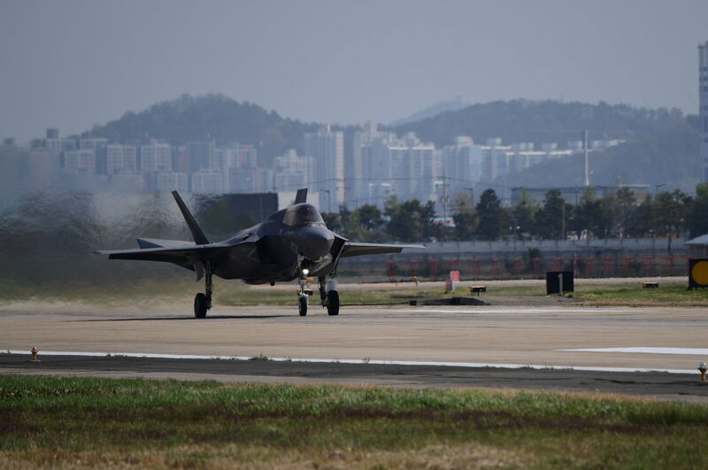 한미공군은 4월 17일(목)부터 5월 2일(금)까지 공군 광주기지에서 2주에 걸쳐 대규모 연합공중훈련 '프리덤 플래그(Freedom Flag)' 훈련을 실시한다. 사진은 광주기지 활주로에 착륙한 미 해병대의 F-35B 전투기 양국 공군은 매년 전반기와 후반기에 각각 실시해오던 연합편대군종합훈련(KFT·Korea Flying Training)과 비질런트 디펜스(Vigilant Defense) 훈련을 작년부터 통합해 프리덤 플래그라는 명칭으로 연 2회 실시하고 있다.