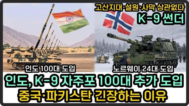 추위·더위·고산지대·북극해·사막지대 상관없이 잘 굴러간다 'K-9 썬더' 인도, K-9 자주포 8년 만에 100대 추가 도입 소식에 중국·파키스탄 왜 불편해할까? K-9 바지라-T는 100문 도입 총 3,700억 원으로 부품 수출+현지 조립 구조 노르웨이도 24대 7,684억 원 규모 추가 도입한다 험준한 북극 환경에서도 우수한 기동성과 내한성 인정 븍유럽에 점점 도배 중인 K-9 자주포 K-9 자주포 유저클럽은 무엇인가?