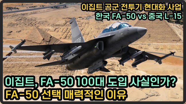 경쟁 기종보다 FA-50 선택 매력적인 이유 이집트에 노후기종이 너무 많다.F-16, 알파제트, K-8E... 할배 기체 교체시기 다가온 이집트 공군 이집트, 한국산 경전투기 FA-50 100대 도입 사실인가?FA-50 선택이 매력적일 수밖에 없는 이유