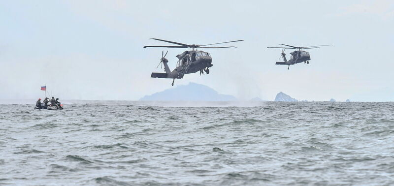 육군특수전사령부는 '25년 UFS/TIGER의 일환으로 25일부터 27일까지 태안 안면도 해상훈련장 일대에서 '한미연합 해상침투훈련'을 실시했다. 한미연합 특수작전능력 강화를 위해 실시된 이번 훈련에는 한미 장병 40여 명과 미측 F-16전투기 및 UH-60헬기 등이 투입되었다. 사진은 목표 해상에 도착한 특전대원들이 헬기에서 이탈하고 있는 모습이다.
