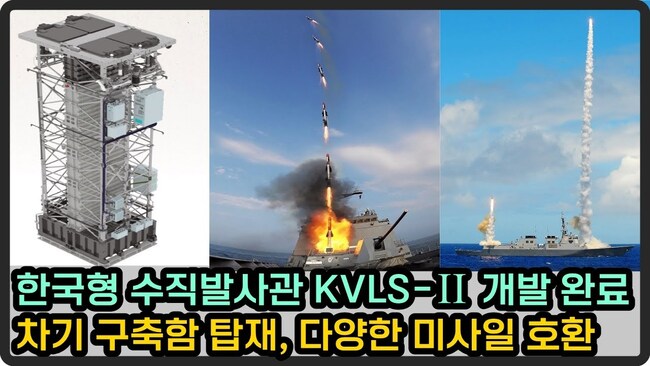 한화에어로스페이스가 방위사업청, 국방과학연구소, 국방기술품질원 등과 함께 ‘한국형 수직발사체계(KVLS-II)’ 개발을 5년 만에 완료. 연구주관을 국과연에서민간 주도 개발 진행. 정조대왕함, 다산정약용함, KDDX 등 차기 호위함 이지스시스템 탑재 KVLS-II 개발하게 된 이유. 국내 방산업계 시사하는 바. 다양한 미사일 호환 가능한데, 어떤 미사일 발사 할 수 있을까? KVLS-II 탑재로 함정 구성은 어떻게 달라 질 수 있을까? 주변국에 대한 영향력은? 향 후 수출 에 유리한 이점은?