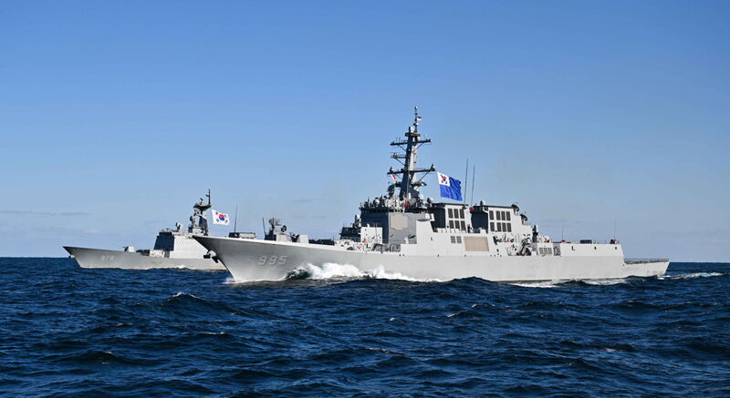 On Monday, November 10, during the Navy’s Fleet-Level Maritime Maneuver Exercise in the East Sea, ROKS Wang Geon and ROKS Jeongjo the Great conducted tactical maneuvers side by side. A Taegeukgi (the national flag of Korea) was flying aboard Wang Geon, while Jeongjo the Great displayed the Navy flag commemorating the 80th anniversary of the ROK Navy’s founding. Launched in July 2022 and commissioned in December 2023, Jeongjo the Great is the first vessel of the KDX-III Batch-II (Jeongjo the Great-class) Aegis destroyer program, designed to significantly bolster ROK’s ballistic-missile defense and maritime combat capabilities. After a year of combat-readiness evaluation and operational integration, the ship has achieved full mission-capable status.