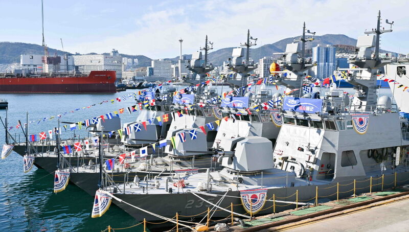 12월 8일 부산 HJ중공업에서 신형 고속정(PKMR) 1~4번함(참수리 231ㆍ232ㆍ233ㆍ235호정) 통합 진수식이 열리고 있다. 230톤급 신형 고속정(PKMR)은 국내에서 설계·건조된 전력으로, 2022년 12월 HJ중공업과의 건조 계약 이후 2024년 착공, 2025년 1월 기공을 거쳐 이날 진수식이 진행됐다. 진수식에는 안상민 해군군수사령관(소장)을 비롯해 방위사업청, 조선업계 관계자 등 약 70여 명이 참석했다.