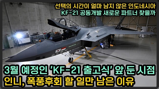 KF-21, 3월 출고와 국산 미사일 개발 완료하면, 인도네시아 폭풍후회 할 일만 남은 이유 KF-21은 개발단계를 마치고 양산 1호기 출고를 2026년 3월에 진행할 예정이며, 기체 조립은 2026년 1월 조립 완료 목표 등 막바지 공정에 들어간 상태다. 엔진·부품 수급 우려가 있었지만 최근 양산 라인 가동과 조립 속도는 빠른 편인데 이로 인해 인도네시아는 공동개발관련하여 함께 할지 말지 선택을 해야할 시기가 다가오고 있다.