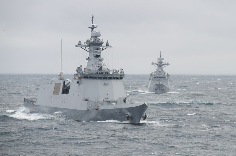 10월 22일, 해군1함대사령부 소속 호위함 포항함(앞쪽, FFG)과 강원함(뒤쪽, FFG)이 2024 호국훈련 일환으로 동해상 합동해상기동훈련을 실시하고 있다. (사진 해군)이번 훈련은 해상에서의 적 도발 및 침투에 즉각적으로 대응할 수 있는 연합ㆍ합동작전 능력을 강화하기 위해 실시했다. 훈련에 참가한 장병들은 현 안보상황의 엄중함을 인식하고 적 도발 시 즉각 강력히 끝까지 응징하겠다는 필승의 전투의지를 고양했다.