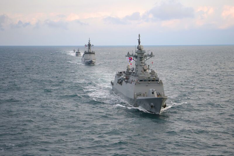 1함대에서는 광개토대왕함(DDH-Ⅰ, 3,200톤급 구축함), 춘천함(FFG-Ⅱ, 3,100톤급 호위함)이 참가한 가운데 적의 잠수함 위협에 대응하기 위한 대잠훈련, 대함 실사격훈련, 전술기동훈련을 했다.2025년 1월 3일 서해상에서 실시한 첫 해상훈련에서 해상작전헬기 AW-159가 호위함 천안함에 착함을 하고 있다.