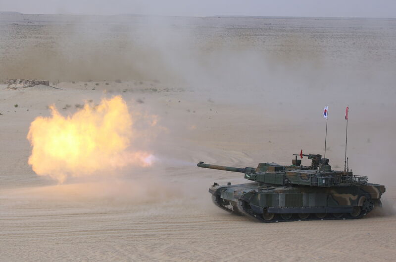 현지연합훈련단 소속 K2전차가 연합사격 훈련간 표적을 향해 120mm 전차포를 사격하고 있다. 이번 훈련에는 제8기동사단 장병들을 주축으로 K2전차, K9A1자주포 등 육군 기계화부대 주요전력 14대가 투입되었다. 10일부터 20일까지 UAE 알하므라 훈련장에서 실시된 훈련에는 제8기동사단 장병들을 주축으로 K2전차·K9A1자주포 등 육군 기계화부대 주요전력 14대가 투입되었다. 기계화부대의 UAE 현지 연합훈련은 이번이 처음으로 육군은 지난해 카타르 현지 연합훈련보다 한층 다양화된 기계화 전력을 운용하였다.