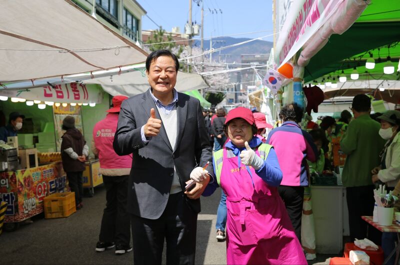 황기철 더불어민주당 창원시 진해구 지역위원장이 지역상인과 대화 후 기념시진을 촬영하고 있다. 진해가 고향인 황기철 더불어민주당 창원시 진해구 지역위원장은 제30대 해군참모총장을 지내고 제31대 국가보훈처장을 역임한 바 있다. 황 위원장은 이날 정현섭 진해구청장과 손동영 진해경찰서장을 각각 만나 군항제의 성공적 운영과 시민 안전을 위한 노력에 깊은 감사 인사를 전하며 격려했다.