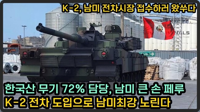 K-2, 남미 전차시장 접수하러 왔쑤다 한국산 무기 72% 담당, 남미 큰 손 페루 K-2전차 도입으로 전차강국 노린다 페루 도착만으로 남미 짱이 되버린 K-2흑표전차