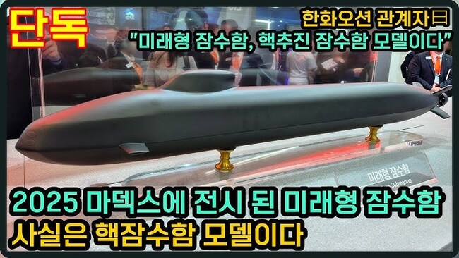 한화오션: “현재 아닌 미래 기술” 미래형 구축함: 전기추진·통합마스트·스마트 함교·병력절감 시스템 미래형 잠수함(3,000톤·2,000톤·특수 스텔스형): AIP+리튬이온 배터리, 각진 스텔스 선형, 림 구동추진기 한화오션 관계자曰 "미래형 잠수함, 사실 핵추진 잠수함 모델이다" MADEX를 통한 한·미·포르투갈 협력 확대, 중동·아시아 수출 다변화