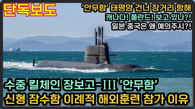 해군의 3000톤급 최신 잠수함 장보고-III(배치-I) 안무함 1척, 괌 인근 한·미 연합 대잠훈련에 참가. 6개 수직발사관(VLS)을 탑재하고, 사거리 약 500km로 추정되는 현무4-4형 SLBM 운용 능력을 갖춰 ‘수중 킬체인’ 별칭이 붙었다. 통상 오래 운용한 잠수함을 해외훈련에 보내는데, 이번 파견을 이례적으로 보는 이유 주변국이나 적성국이 안무함 항해를 왜 예의주시 할까? 이번 한미 연합 대잠훈련으로 우리가 얻고자 하는 것은?
